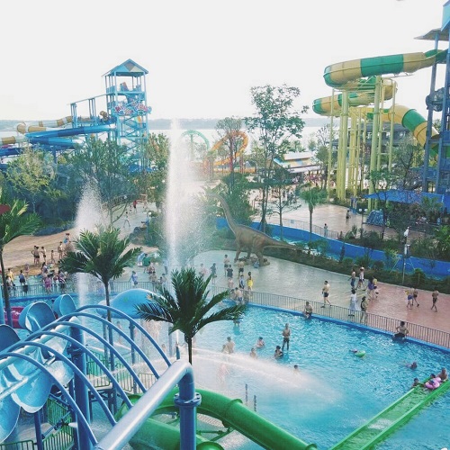 酒足饭饱休息片刻我们团体便前往水上世界,阳光依旧很璀璨,但是我们的热情更高涨,而后在水上世界门口拍了团体集体旅行照.之后进了如画般的景区享受这大自然和社会繁荣所带来的馈赠。